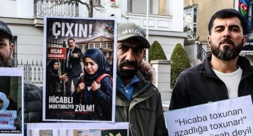 Almaniyada Azərbaycan səfirliyi önündə “Hicaba Azadlıq” aksiyası keçirilib