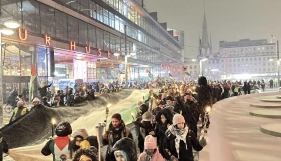 İsveçin paytaxtı Stokholmda yüzlərlə kişi Qəzza xalqı ilə həmrəylik məqsədilə yeni il şənliklərini ləğv edərək Fələstinə dəstək aksiyasında bir araya gəlib. Aksiya ölkədə fəaliyyət göstərən çoxsaylı vətəndaş cəmiyyəti təşkilatlarının çağırışı ilə təşkil olunub.