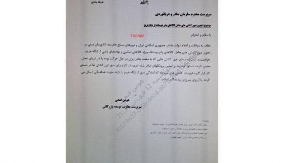 Qeyd edilib ki, İran xüsusi protokollar çərçivəsində zəruri mallar və humanitar yardım daşıyan gəmilərin Hörmüz boğazından İran limanlarına və ya yaxınlıqdakı sulara keçməsini təsdiqləyib.